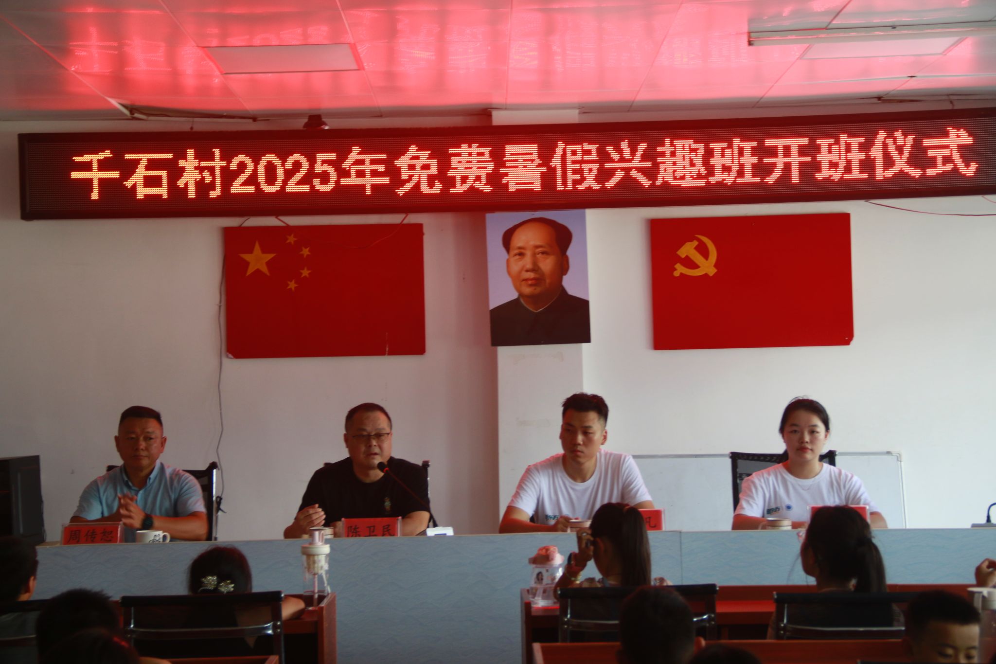仪式上,实践团队长介绍了实践团队的课程内容,将通过故事、游戏等形式开展21天特色课程。周传恕和陈卫民先后发言,对实践团的到来表示欢迎,肯定了实践团服务基层的奉献精神,并希望实践团成员们在实践中深入了解乡村教育现状,为千石村注入青春活力,同时要注重学生安全,展现湖南师范大学青年的责任与担当。吴凡提出专业实践要求,叮嘱队员们发挥学科优势,为孩子们带去实用知识与温暖陪伴。